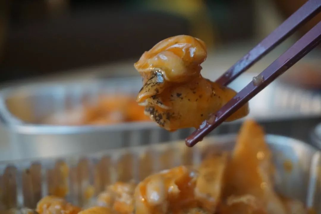 本場測評的最后一款黃金鮑肉,本來大家已經(jīng)吃的半飽了,但嘗了一口后紛紛又把筷子伸向了碗里。